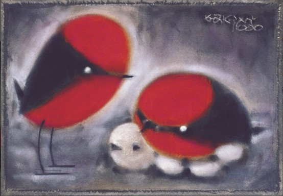 劉其偉最有名的是一隻紅色的「婆憂鳥」,是他思念祖母的故事。
