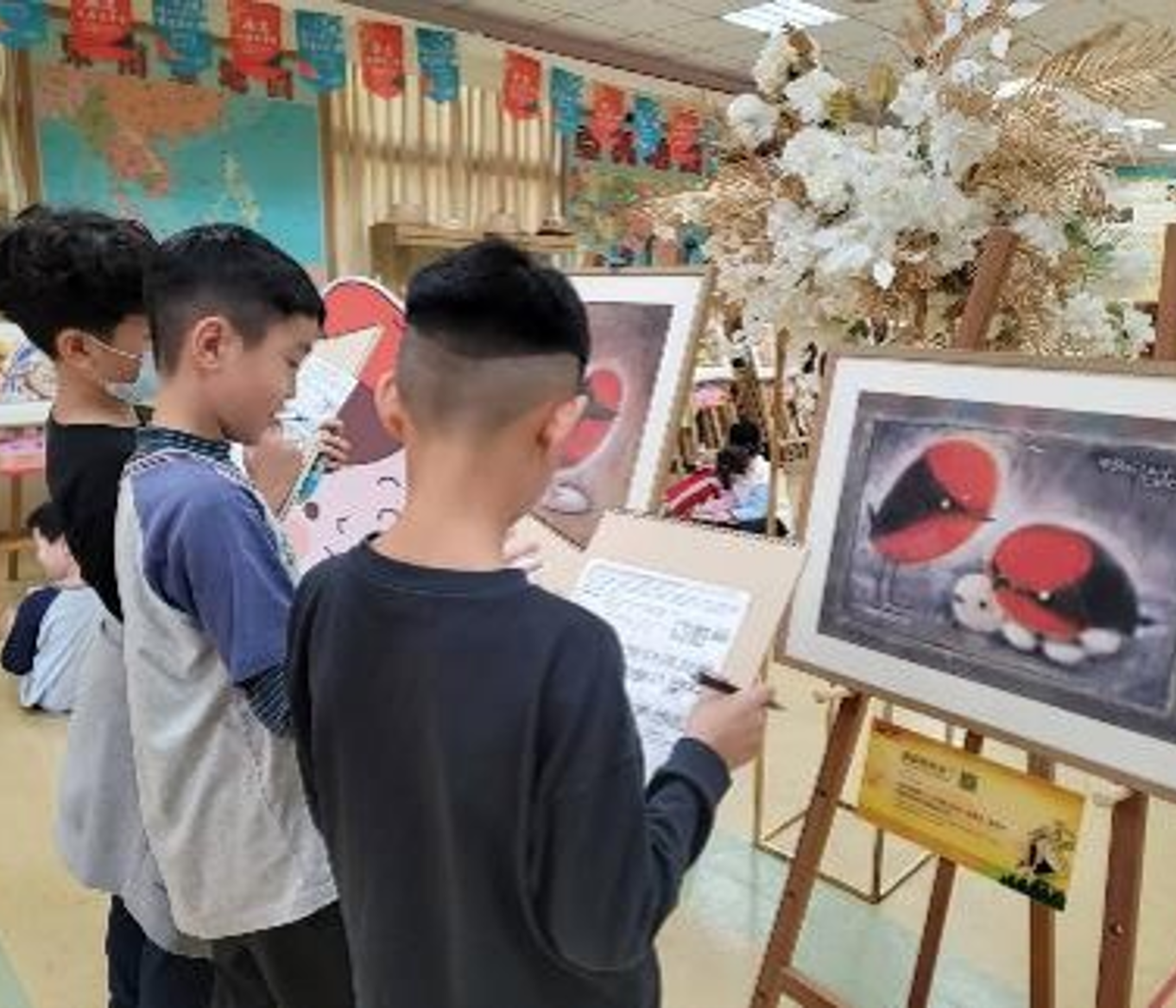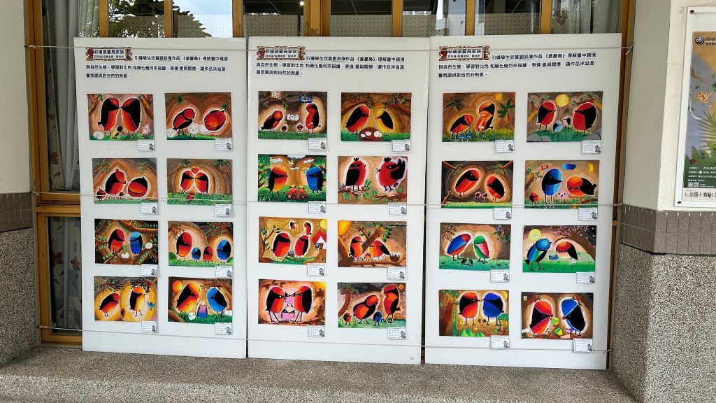 新北市樹林國小113學年展覽現場:將畫作擺在學生視線可以輕易觀賞的高度是很重要的。