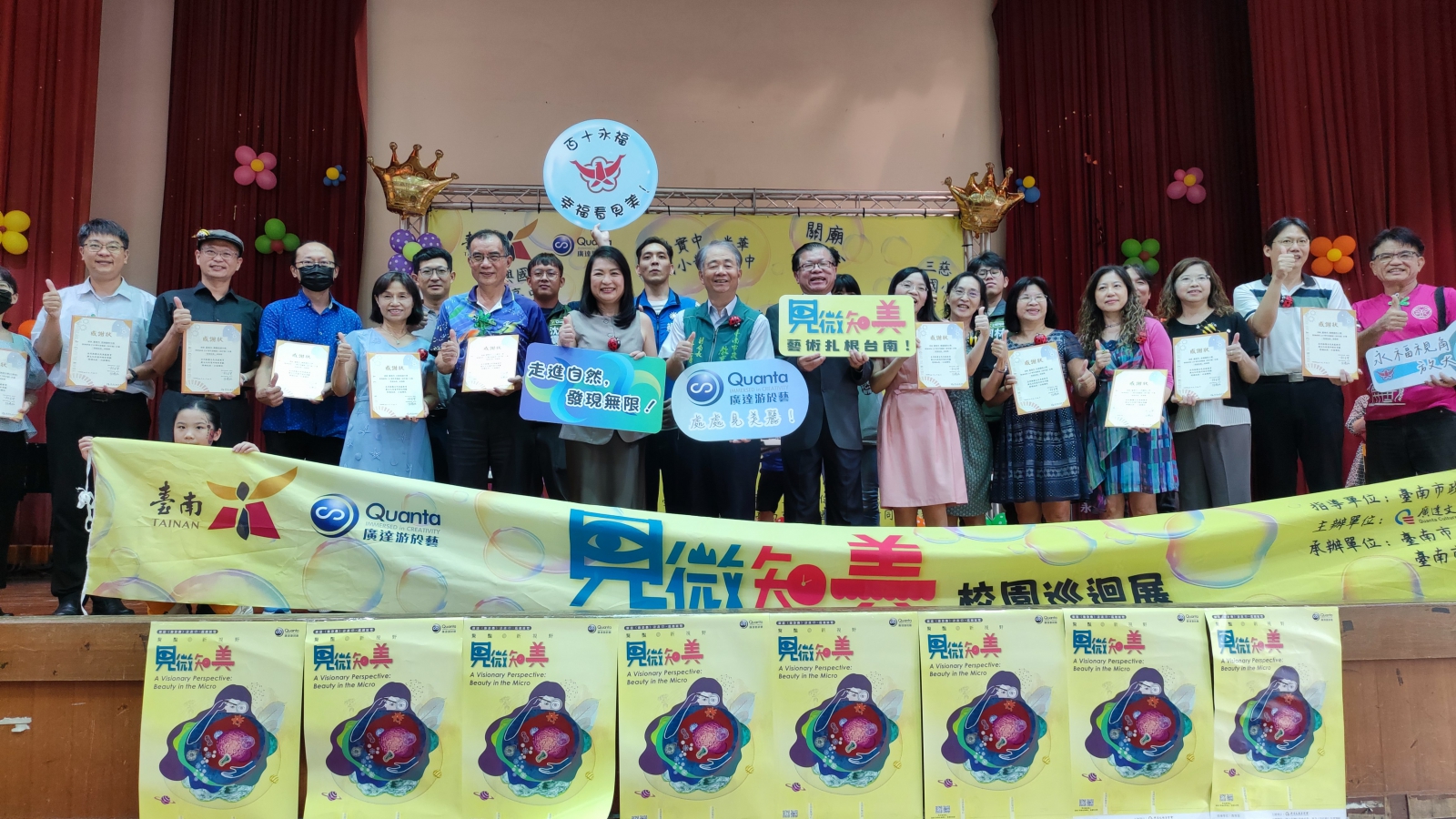 活動中廣達文教基金會徐繪珈執行長頒贈各巡迴學校感謝狀,象徵新學年度巡迴展正式啟動。今年共有12所臺南市學校參與巡迴,自9月起將陸續於永福國小、中信國際高級中等學校、六甲國小等校展出,預計吸引近萬名師生參與。歡迎對於展覽有興趣的民眾持續關注各校展期,一起走入「見微知美」的藝術世界,發現生活中處處皆美的感動。